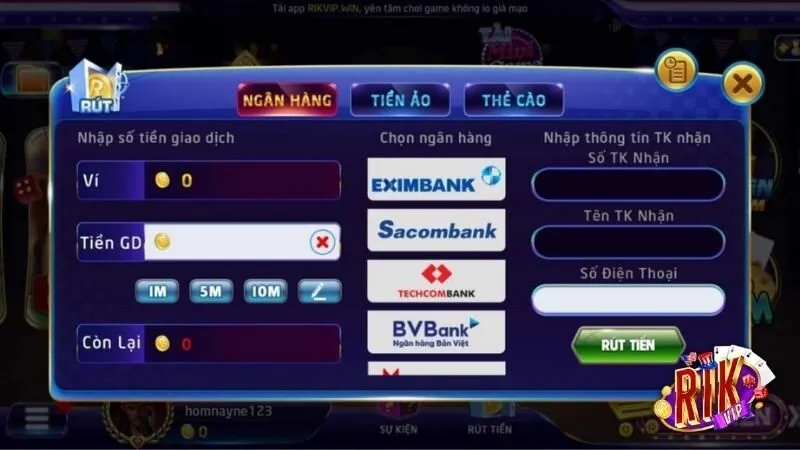 Rút tiền Rikvip về chuyển khoản ngân hàng